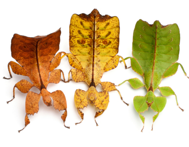 Le mâle et la femelle présentent une coloration vert clair imitant les feuilles d'arbre (y compris les nervures), mais peuvent également avoir des teintes plus ou moins jaunâtres à brunâtres. L'un et l'autre possèdent au niveau du pronotum des glandes pouvant émettre un liquide blanchâtre, irritant, destiné à se prémunir des éventuels prédateurs (reptiles, oiseaux, chauves-souris, singes...). Autre fait remarquable, cette espèce pratique l'autotomie de ses membres, c'est à dire qu'elle peut se séparer volontairement d'une patte pour l'abandonner par exemple à un prédateur, comme le font certains lézards avec l'extrémité de leur queue.
