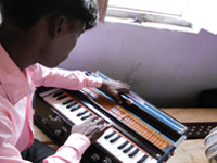 Chaque école (5) a été pourvue d’un Harmonium, une paire de Tabla, un Dholak, une paire de Jhaal, une Flûte Bansuri et un Tambourin. Chaque école a 2 professeurs pour manager le matériel et le distribuer aux enfants