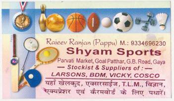 Rajeev Ranjan (Pappu), Shyam Sports, Parvati Market, Goal Patthar, G.B Road, Gaya